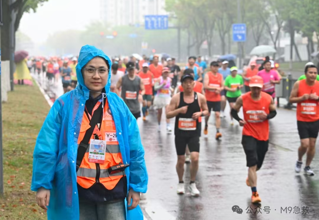 265名医疗观察员分布赛道沿线,密切监测跑者状态;60名急救志愿者携带AED(自动体外除颤仪)、急救包等装备,随时待命;120多名专业医务人员驻守医疗点、跟随救护车,提供即时的医疗支持;40名急救跑者融入参赛队伍,以“移动保障站”的形式全程护航;16名“贴心兔”以稳定配速与暖心鼓励,陪伴跑者安全抵达终点。