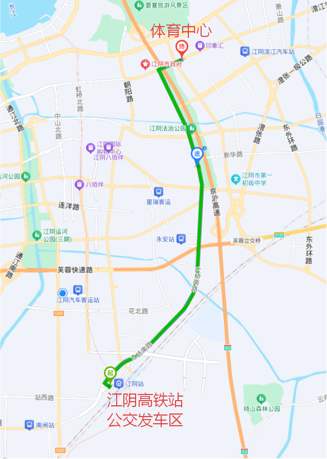 ✅ 运行区间:江阴高铁站公交发车区—江阴市体育中心