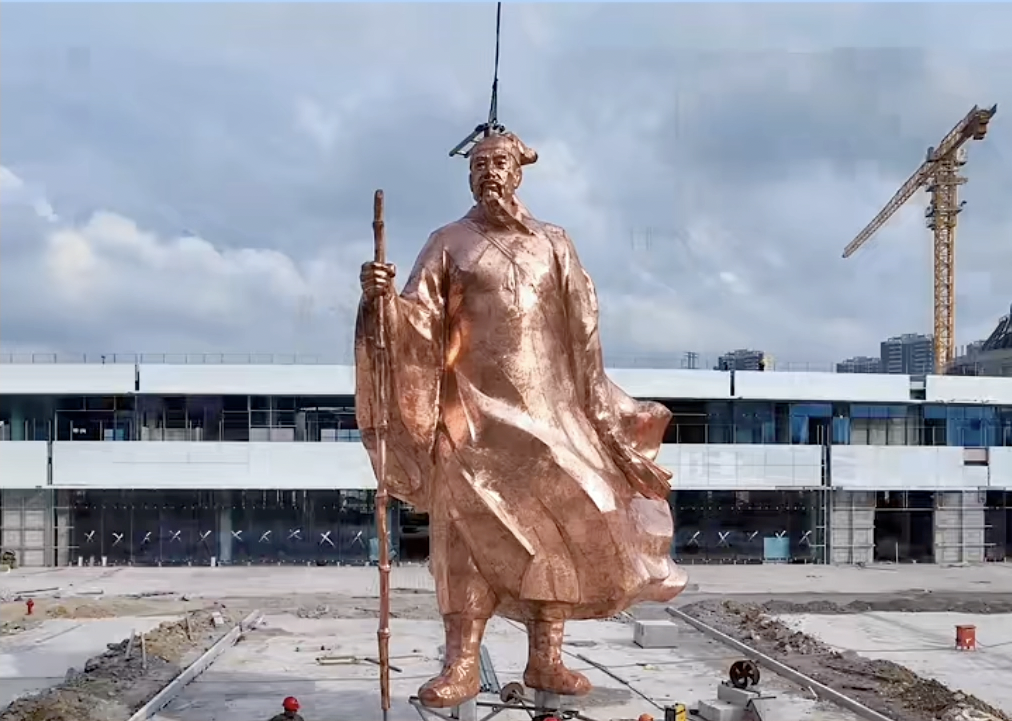 雕像全身高8.7米,底座高1.5米,数字组合为“1587”,契合了徐霞客的诞生之年,该雕像由江阴籍雕塑家夏和兴创作而成为纯铜打造,重约8吨,预计将于8月底落成。