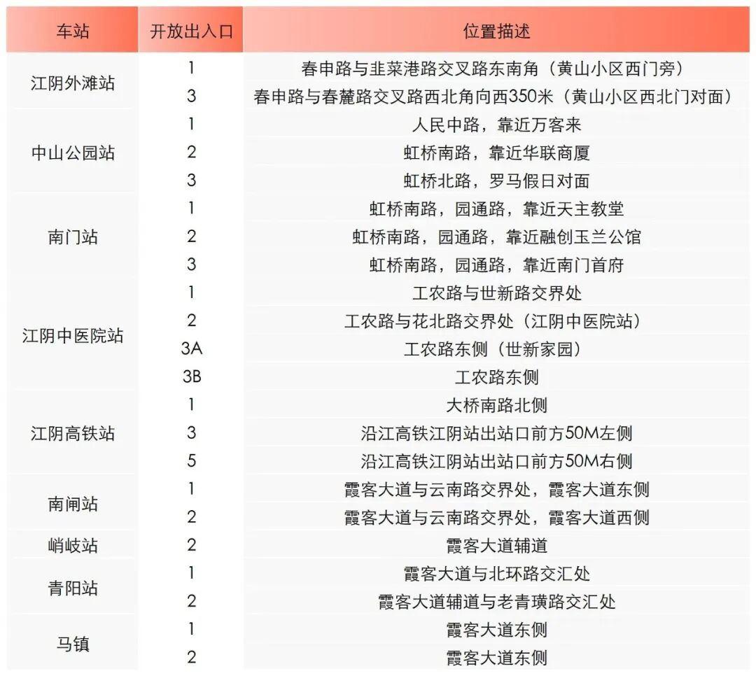 中山公园站、江阴高铁站、江阴外滩站