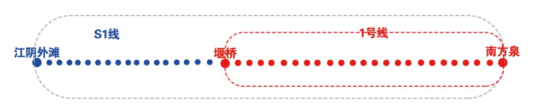 S1线与1号线列车按照1:1比例开行