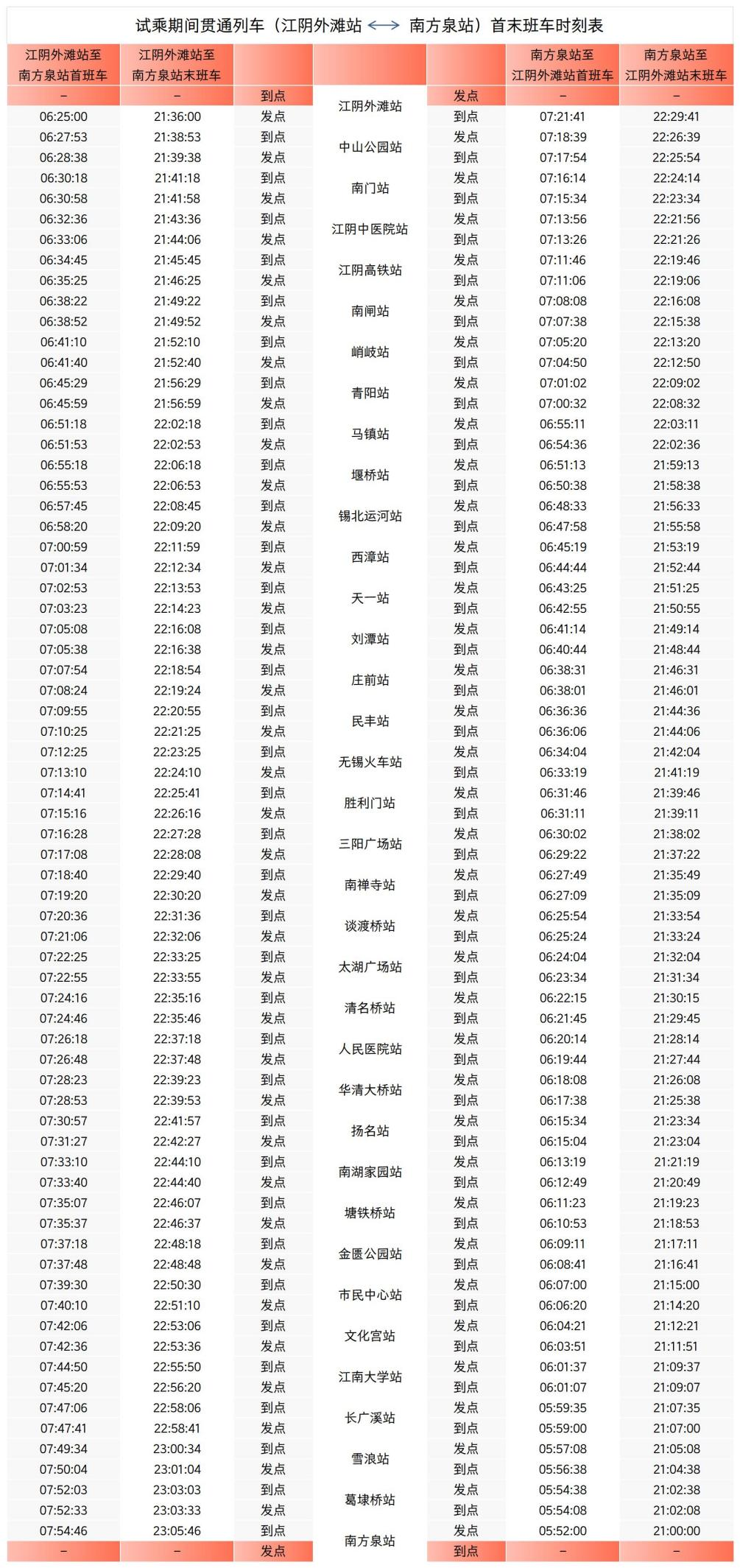 贯通列车(江阴外滩站至南方泉站)