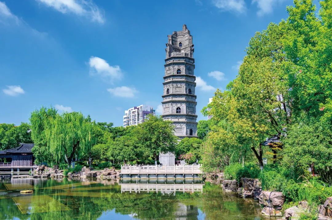 兴国园本无园,只为保护千年古塔而建。园内绿树成荫、飞流直下,勾画出一幅宁静而壮美的画卷。兴国园中古老的桥梁、亭阁和园林巧妙地融为一体,已成为江阴的一个文化名片。出兴国园向北步行四百米,江阴文庙坐落于此。文庙内虽古朴却明亮,供奉着孔子及其弟子的塑像,每当春节来临,江阴人会带着孩子来到这里,祈求学业顺遂。