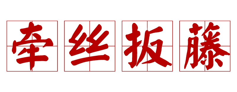 牵丝扳藤(音:qie si bai deng),也作“牵丝攀藤”,比喻事情相互连结、纠缠不清,也指不利索、拖泥带水的样子。