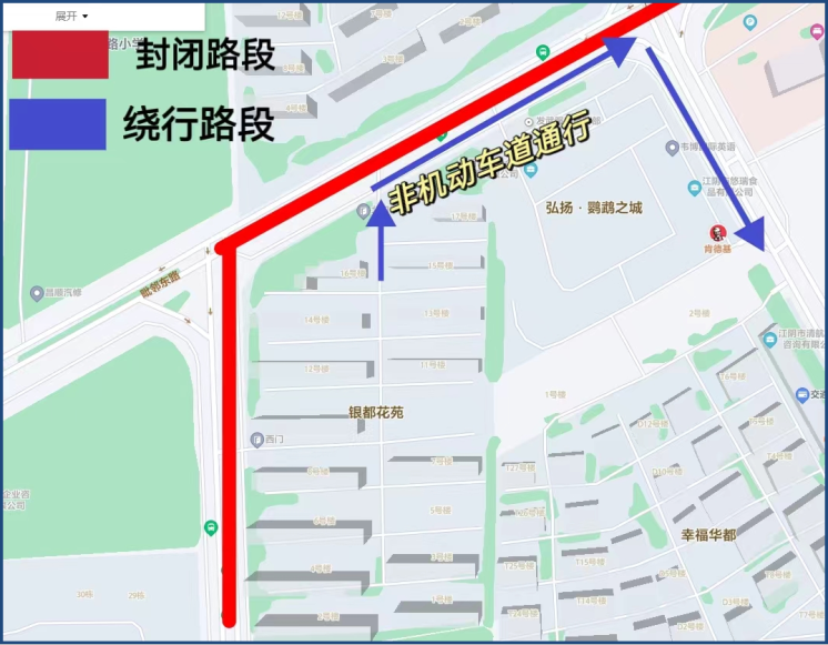 推荐绕行路线:①黄山路→芙蓉大道→绕行向西;②澄张公路→芙蓉大道→绕行向西;③东外环路→芙蓉大道→绕行向西。