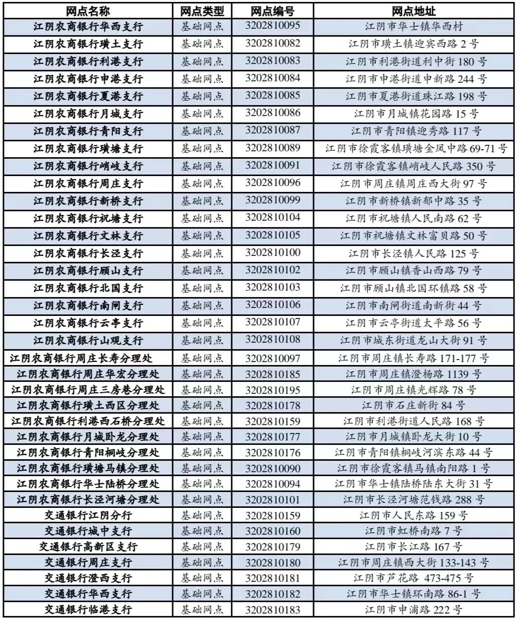 其中江阴农商银行29家