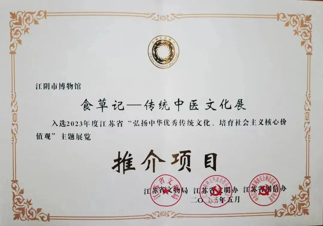 近几年,江阴市博物馆聚焦社会热点,立足地方文化特色,利用馆藏文物举办有温度有热度的原创展览,如良渚申遗成功高城墩良渚遗址考古20年的《时光海海 摆渡良渚》,结合地方中医文化的《食草记》,《徽忆》等都是全新的原创展览,达到了很好的社会效果,也获得了省级多项荣誉。