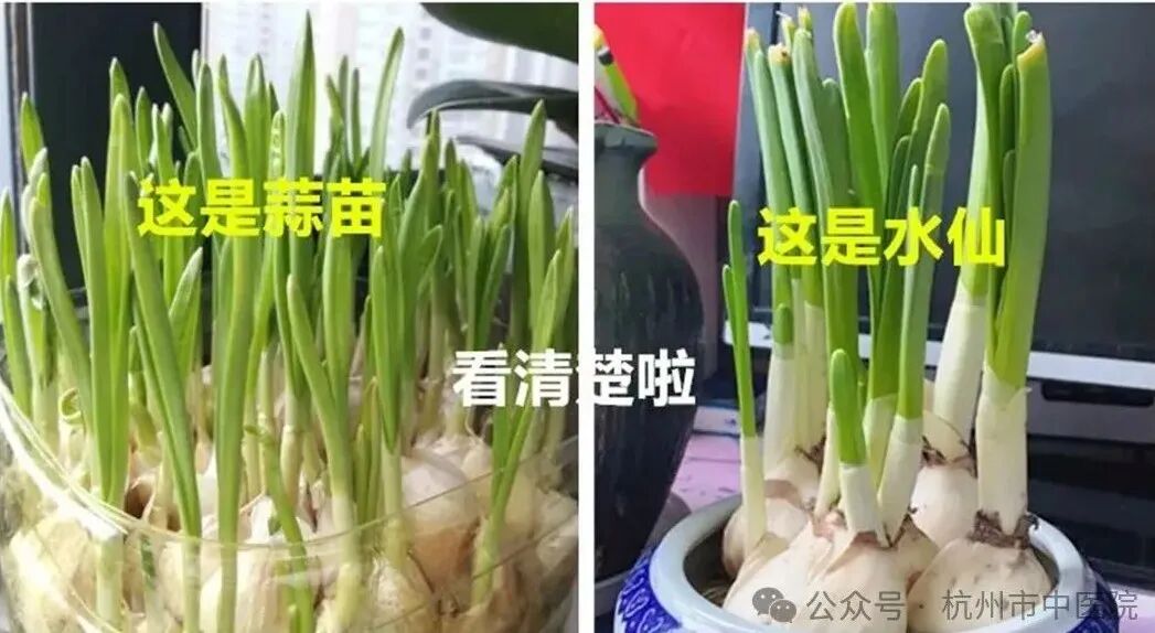 代表植物有中国水仙、黄水仙、朱顶红、石蒜、雪滴花、文殊兰等。石蒜科植物其鳞茎多含有毒的生物碱、雪花胺,可致人呕吐、腹泻,引起皮炎。此前就有人将水仙和蒜苗混淆导致中毒。