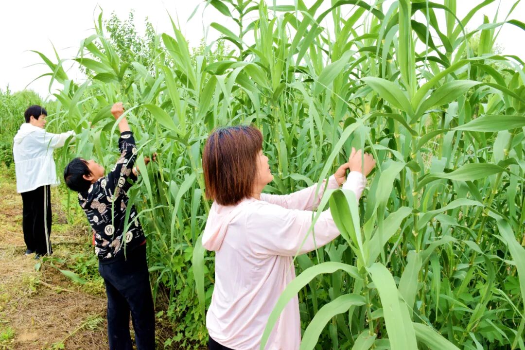 眼下,正是芦苇叶长成的时候,三三两两的村民穿梭在芦苇丛中,寻找形好、叶大、嫩绿的芦叶,然后一片片打下。