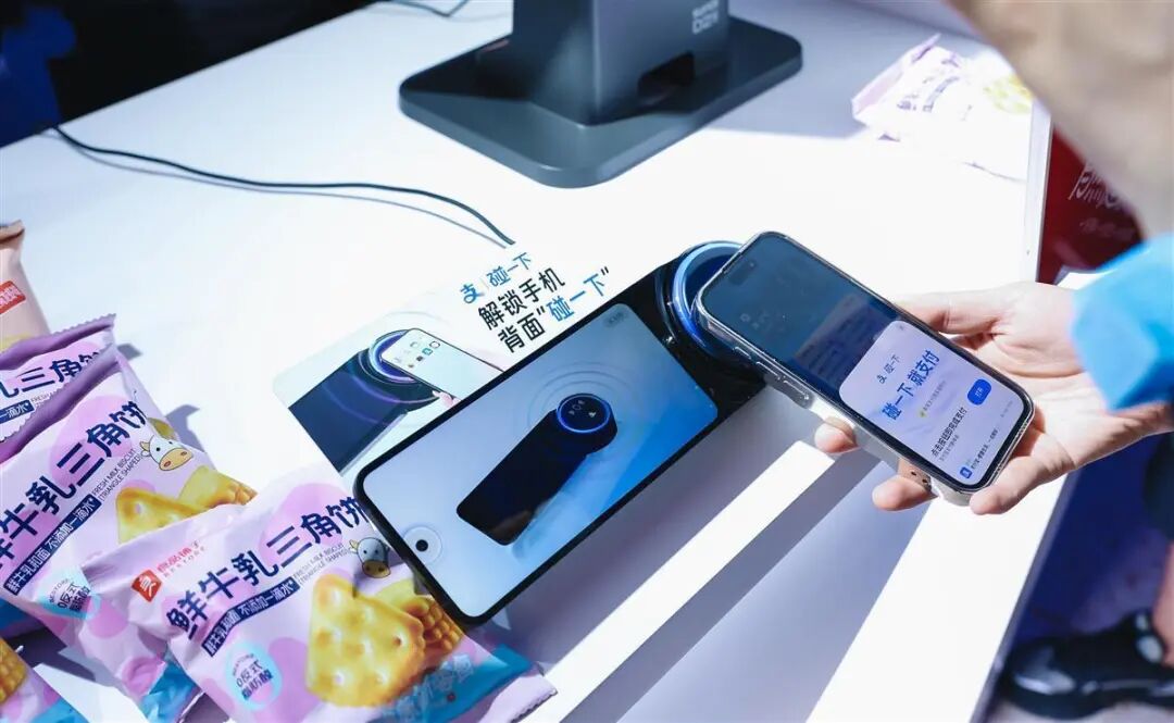 现场一位品牌商家介绍,新用户最快3秒钟即可完成入会,会员碰一下就能享受会员价、积分,破解了商家同时快捷收银、拉新和会员运营、私域精准营销的“不可能三角”,实现“一碰三连”。“比如以前用户需要报手机号,我们要一个个数字敲进电脑,现在就不需要了,‘碰一下’就好了。”