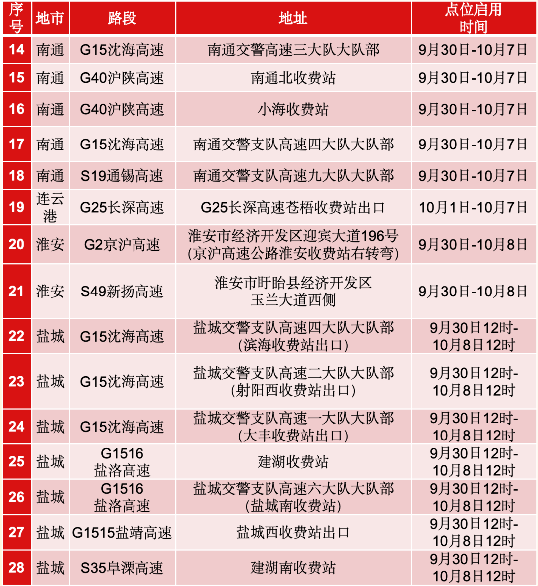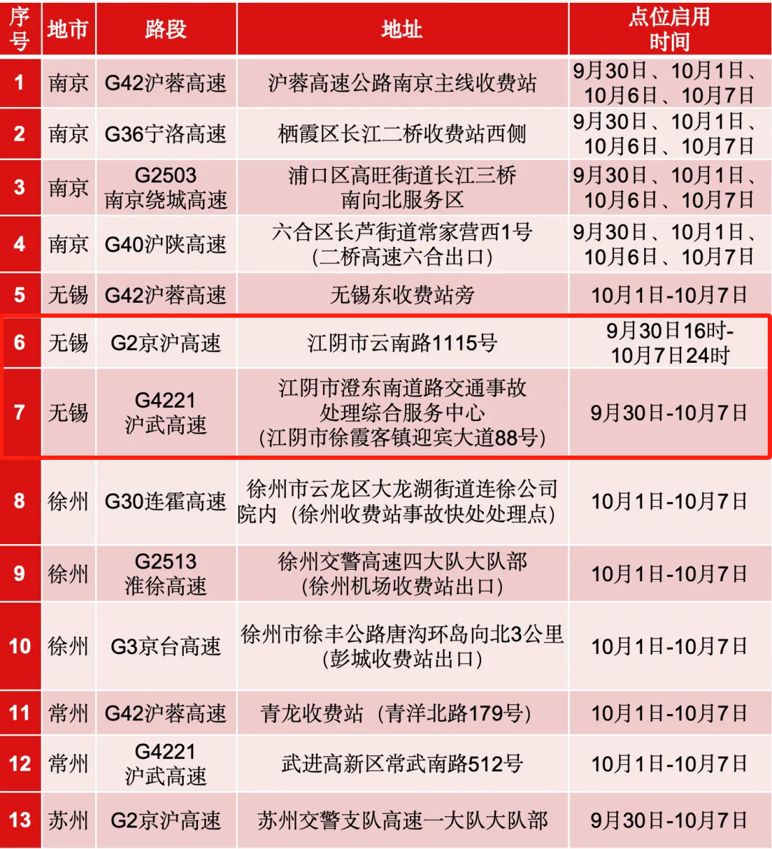 国庆期间,江苏高速在全路网设置43个事故快处快赔服务点,方便快速处理轻微事故。此外,用户还可通过“交管12123”APP 和“江苏高速96777”微信公众号等渠道,进行线上快处快赔。同时,高速公路服务区警务站在节假日期间将加大涉车涉路违法犯罪行为查处打击力度。