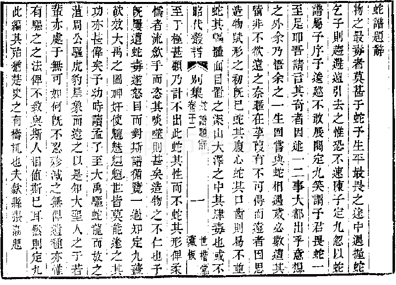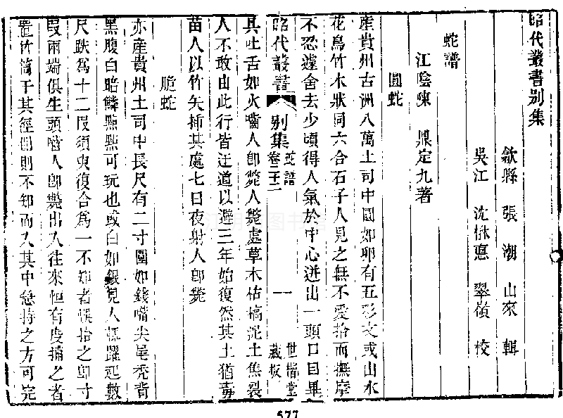 他还重视蛇类的经济用途。如环蛇脂“已(止)风去厉”,鳞蛇胆“可解诸药之毒……安南长官司出者,可治牙疼”等。还有一种双身蛇,“善捕鼠及狸,出占城国、缅甸,滇西亦有”“缅人以其善捕鼠, 尝畜于家”。