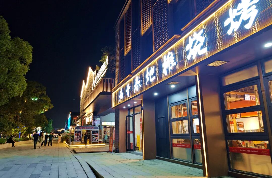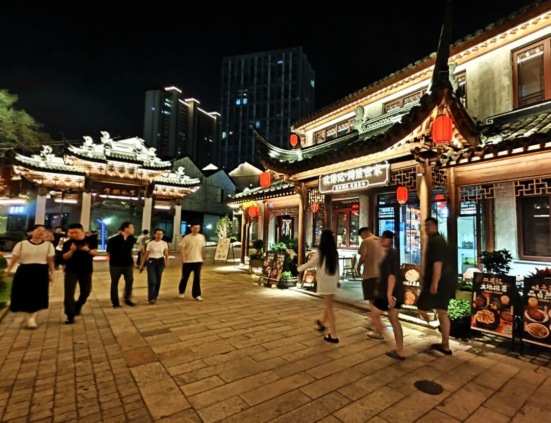 当暮色浸透青石板路,忠义老街的霓虹便与漕运古巷的灯笼次第亮起。南端的主题街区,是年轻食客的朝圣地。这里有酒吧、特色烧烤、火锅和南北美食……炭火与红油蒸腾的雾气里,藏着江南最鲜活的市井风情。