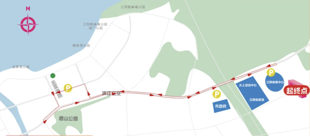 本次“澄马”赛事的起点位于江阴市体育中心,如选手选择出租车、网约车抵达起点,建议将定位设置为江阴市体育中心西北门。