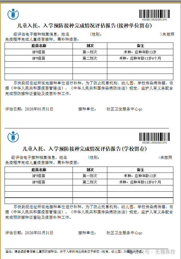 1、自行打印《儿童入托、入学预防接种完成情况评估报告》(优先推荐)