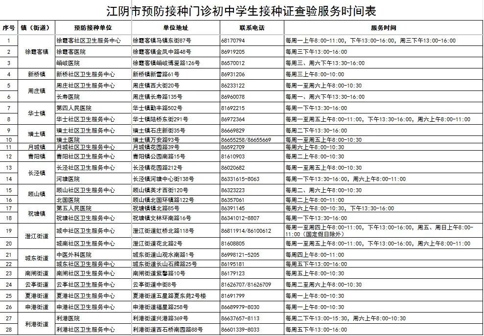 初中学生接种证查验服务时间表